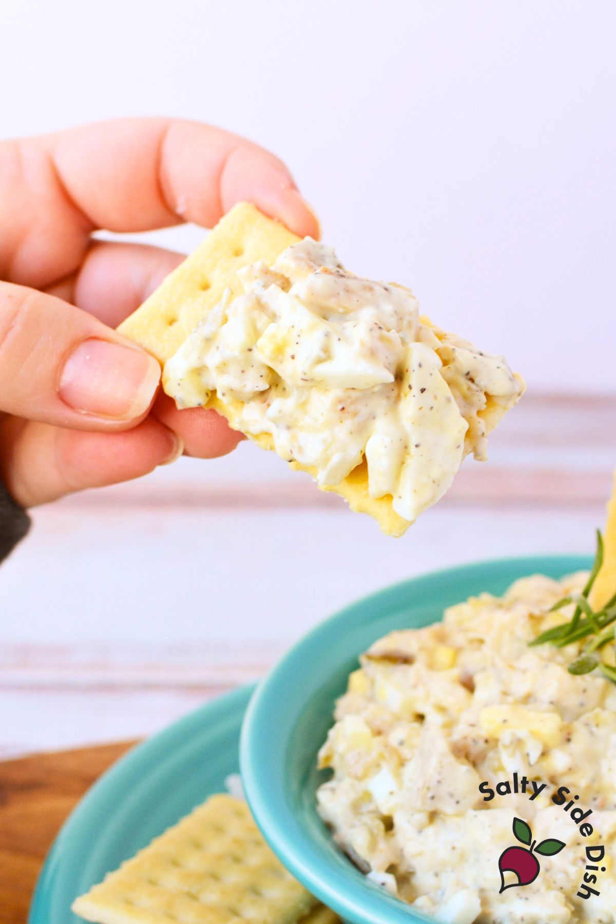 - Serve it with crackers: Scoop it up with sturdy crackers like Ritz, Town House, or Triscuit. Their buttery, slightly salty crunch pairs perfectly with the creamy chicken mixture.